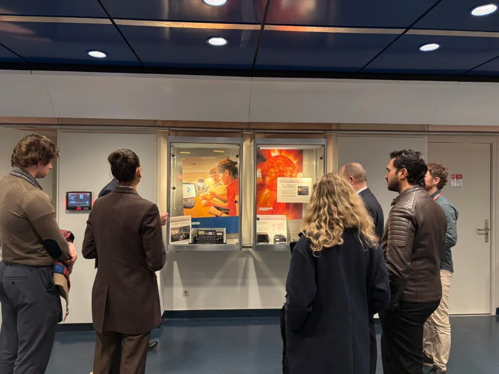 Het bezoek omvatte ook een rondleiding door enkele faciliteiten van de ESA, waar we de lopende activiteiten nader hebben verkend en de kans hebben gehad om satellietmodellen en missieapparatuur van dichtbij te bekijken.